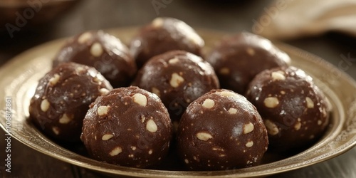 chocolate, truffle, dark, luxury, dessert, epicure, sweet, gold, serving, tray