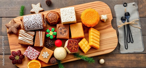 Delicious Christmas Treats on Wooden Board Festive Sweets Holiday Baking Winter Delights