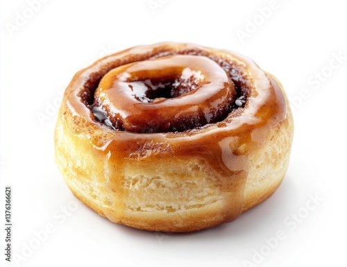Delicious Cinnamon Roll with Glaze on White Background Close-up Shot
