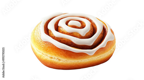 Delicious cinnamon roll with white icing, isolated on a white background. PNG