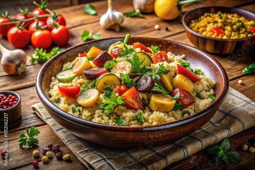 couscous, epicure, herb, side dish, vegetarian, wholesome, organic, rustic, culinary, cooking, appetising, comfort food, colourful, grain, nourishment, food photography, dining, natural light, kitchen, home cooking, delicious, tasty, favor, organic food, vegetarian dish, table setting, healthy lifestyle, culinary arts