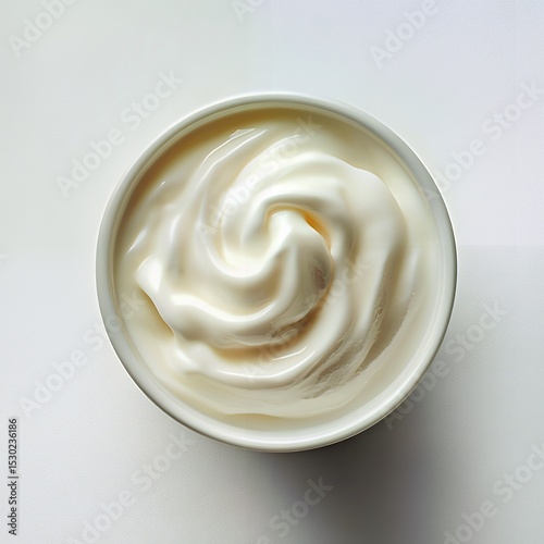 Delicious creamy yogurt swirled in a bowl, showcasing a smooth texture and vibrant whiteness.