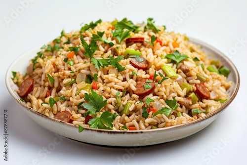 Delicious Dirty Rice with Smoked Sausage in Elegant Bowl