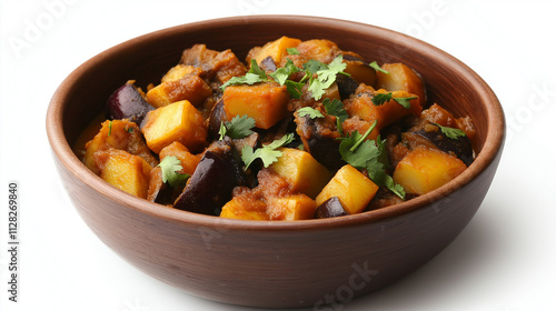 aubergine, potato, curry, indian, cookery, food, dish, meal, dinner, lunch, vegetable, spicey, delicious, tasty, comfort, culinary, receipe, ingredient, cooking, bowl, wooden, rustic, cilantro, garish, spice, favor, aroma, texture, vegetarian, vegan, healthy, traditional, authentic, eatery, plate, serving, eat, side, main, course, potato, generative, ai