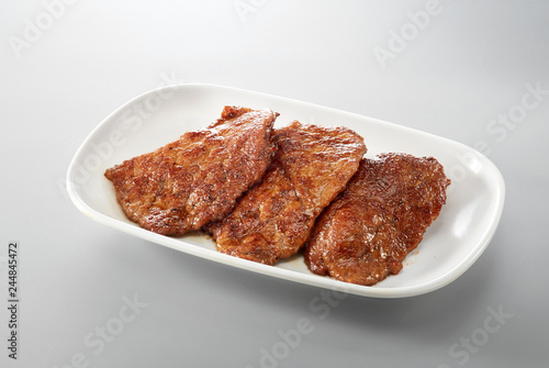 meat, food, dinner, meal, beef, plate, steak, pork meat, dish, bar-b-q, sauce, lunch, grilled, chicken, fried, white, cooked, lamb, closeup, vegetable, bar-b-q, chop, eatery, cookery, grill