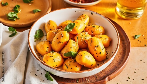 Delicious Golden Potatoes With Herbs And Seasoning In A Bowl Still Life