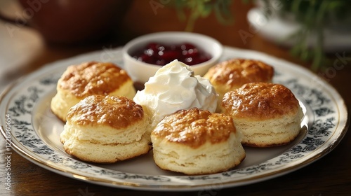 cream, jam, tea, dessert, pastry, baked, food, sweet, delicious, tasty, gold, butter, breakfast, brunch, afternoon, treat, homemade, cookery, plate, table, eat, meal, wheat, flour, sugar, egg, milk, baking, oven, receipe, cook, kitchen, appetising, culinary, fresh, organic, healthy, epicure, english, scottish, traditional