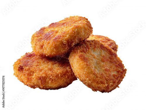 Delicious golden-brown fried potato croquettes on a bright white backdrop, perfect for food-themed concepts.