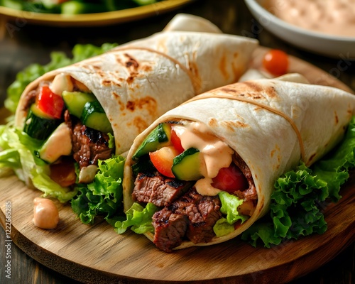 burrito, steak, fresh vegetable, cucumber, tomatoes, lettuce, tortilla, enclosed, mexican food, food photography, tasty, appetising, grilled, health food, lunch, dinner, meal, cookery, eatery, food, beef, receipe, cooking, delicious, high-quality, closeup, mexican, eat, ingredient