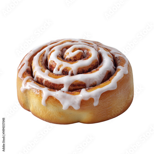 Delicious homemade cinnamon roll with sweet creamy icing isolated on a clean white background, tempting the viewer with its warm, freshly baked appearance.