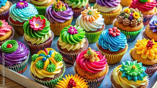 Delicious homemade cupcakes in a colorful box, perfect for birthdays and parties. Baking and food photography capture their sweet design.