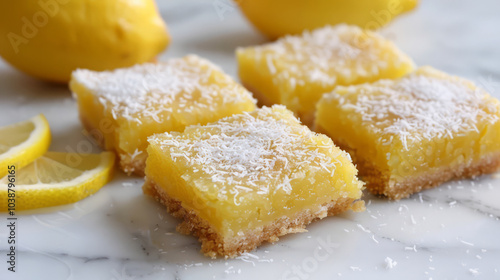 lemon, coconut, bar, dessert, citrous, sweet, baked goods, refreshing, lemony, tropical, food, snack, square, treat, homemade, baking, yellow, cake, pastry, fresh, light, indulgence, crumbly, tart, sliced, confection, bright, natural, fruit, snack bar, simple, epicure, plate