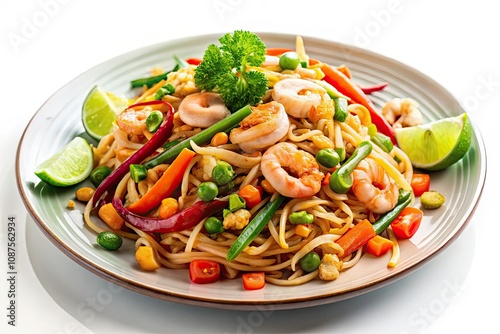 Delicious Pad Thai on White Background for Culinary Branding and Marketing