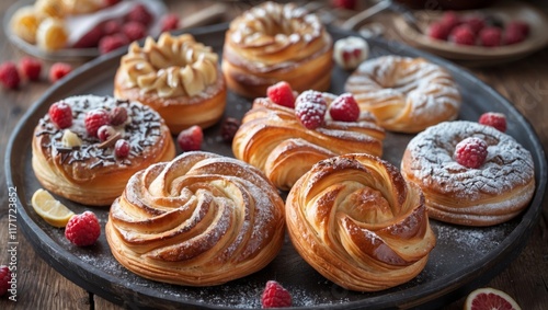 pastry, treat, baked goods, dessert, bakery, confection, cake, cookie, muffin, croissant, tart, pie, baking, frosting, icing, powdered sugar, cotton balls