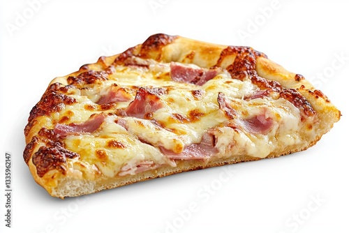 Delicious pizza slice with mozzarella and ham on white background a appetizing shot of culinary joy
