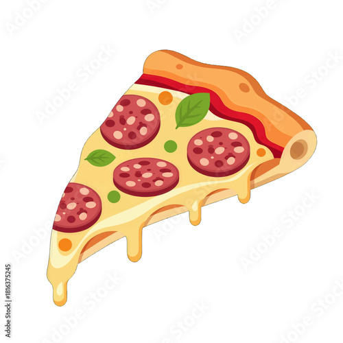 Delicious Pizza Slice with Pepperoni and Basil