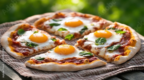 Delicious Pizza Topped with Eggs and Cheese for a Comforting Meal
