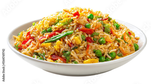 Delicious Plate of Fried Rice with Egg, Chicken and Vegetables Isolated on a Transparent Background