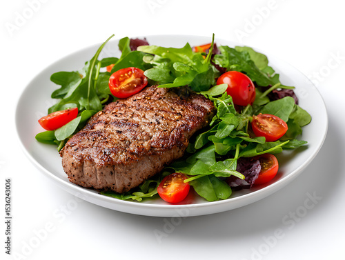 Delicious Plate of Steak with Salad Isolated on a white Background or transparent, png cut out 46318432 1