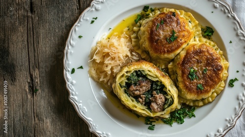 Delicious Savory Dumplings Served with Sauerkraut