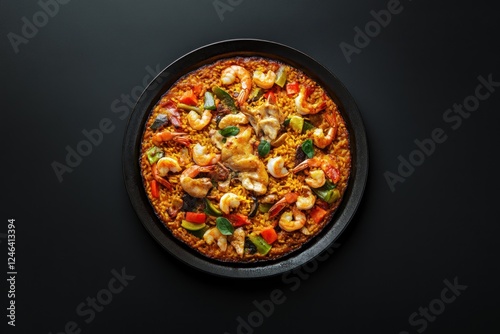 paella, seafood, rice, dish, spanish, cookery, food, dinner, lunch, meal, shrimp, prawn, chicken, vegetable, plate, delicious, tasty, culinary, epicure, appetising, savoury, flavorful, aroma, traditional, receipe, ingredient, mediterranean, cooking, gastronomy, eat, eatery, favor, taste