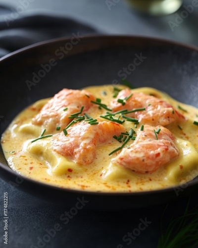 seafood, shrimp, pasta, garnish, chives, culinary, dining, epicure, delicious, food photography, home cooking, fine dining, ingredient, sauce, garnishing, texture, colours, presentation, plating, comfort food, cookery, favor, sophisticated, culinary arts, tasty, savoury, indulgent, luxurious, appetising