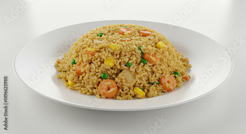 Delicious Shrimp and Vegetable Fried Rice on a White Plate