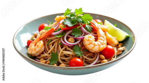 thai food, spaghetti, shrimp, seafood, thai cuisine, asian cuisine, health food, food photography, closeup, food, plate, bowl, tomatoes, onion, cilantro, parsley, nut, lime, eatery, menu, receipe, dinner, lunch, appetising, fresh, vibrant, colourful, asian cuisine