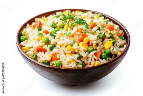 fried, rice, vegetable, corn, pea, carrot, bowl, food, cookery, meal, dish, healthy, delicious, tasty, appetising, eatery, cooking, receipe, white, background, isolated, studio, shot, high, resolution, closeup, vegetarian, vegan, side, lunch, dinner, asian, chinese