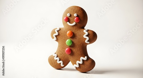 Deliciously Baked Gingerbread Man Cookie Adorned with Bright Colorful Candies and Icing, a Classic Festive Holiday Treat
