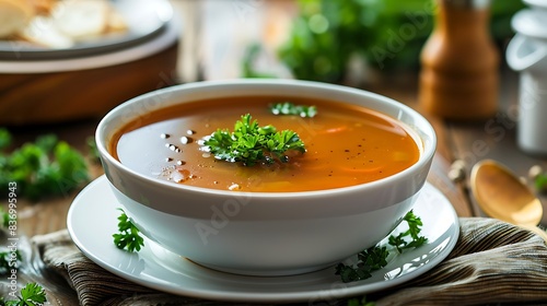 delight, sense, capturing, healthy, goodness, homemade, vegetable, soup, garnished, fresh, parsley, garnish, white, plate, set, against, rustic, table, setting, warmth, food, bowl, meal, dinner, lunch, cream, tomatoes, dish, pumpkin, hot, vegetarian, epicure, meat, chicken, broth, cookery, carrot, spoon
