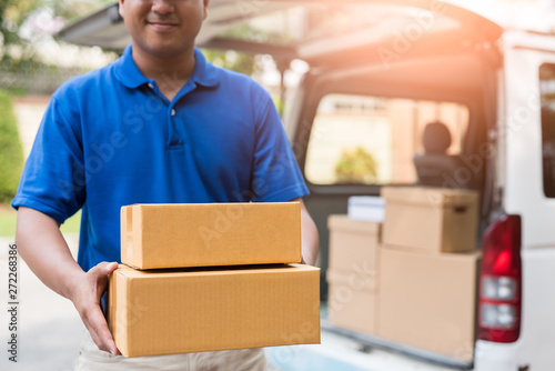 box, moving, cardboard, young, delivery, isolated, holding, cardbox, carrying, packing, smiling, package, people, person, business, happy, white, home, woman, box, men at work, move, parcel, house, guy, asian, background, blue, cap, car, cargo, courier, deliver, hat, job, mail, male, man, occupation, order
