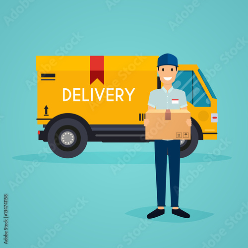 delivery, man, box, vector, background, illustration, bakery, service, truck, white, isolated, person, cartoon, holding, business, food, cap, flat, work, transportation, transport, courier, shipping, baker, people, design, male, human, men at work, job, character, occupation, uniform, package, profession, deliver, cardbox, shipment, van, symbol, icon, cardboard, vehicle, logistic, concept, order, web, car, container, product