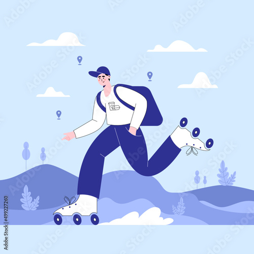 delivery, bag, courier, order, food, service, man, package, people, illustration, vector, deliver, cartoon, online, transportation, shipping, flat, grocery, carrying, fast, box, concept, male, shop, carry, character, business, guy, client, job, isolated, men at work, meal, pack, shipment, store, help, sale, backpack, buying, commerce, catering, consumer, element, e-business, drive, map, young