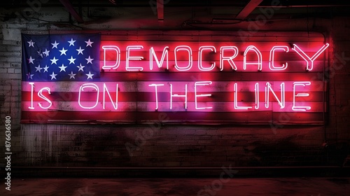 “DEMOCRACY IS ON THE LINE” neon sign - election - parties - politics - authoritarianism