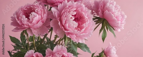Dense cluster of pink peonies against a soft pink backdrop , pink background, spring flowers, beauty