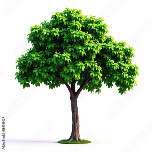 Dense foliage on a Terminalia Ivorensis tree isolated against a plain background, tree, botanical