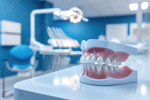 Dentist office, jaw on the table . Dentist background