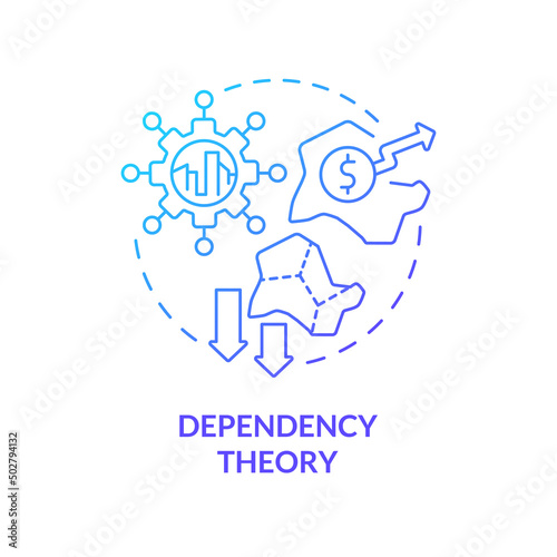 Dependency theory blue gradient concept icon. Relationship between poor and wealthy countries abstract idea thin line illustration. Isolated outline drawing. Myriad Pro-Bold font used