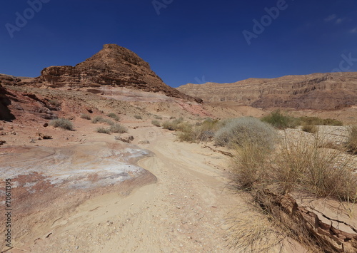 desert, israel, road, grass, landscape, nature, scenic, arid climate, negev, mountain, geology, red, orange, turn, bush, tree, remote, barren, sandstone, gravel, horizontal, outdoors, rock, copper, background, dry, copy space, tour tourism