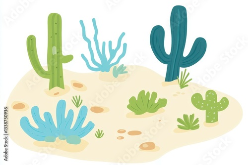 Desert Garden with Succulents and Cacti: A collection of cacti and succulents in varying shades of green