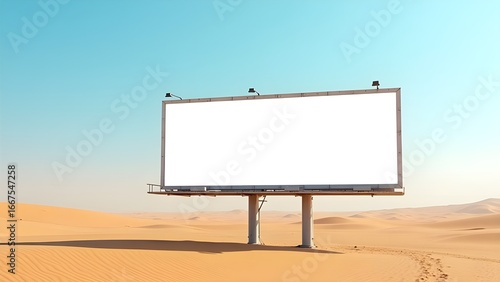 billboard, desert, sand, dune, highway, road, advertising, board, signage, banner, poster, promotion, marketing, exposure, clean, blank, empty, sunlight, shadow, minimalism, outdoors, environment, huge, landscape, horizon, sky, blue, cinematic, dry, realistic, scale, isolated, steel, frame, structure, perspective, travel, modern, presentation, commercial, concept, hot, heat, arid