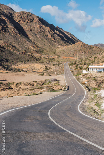 Desertic curvy road in Cabo de Gata National Park, Almeria, Spain.