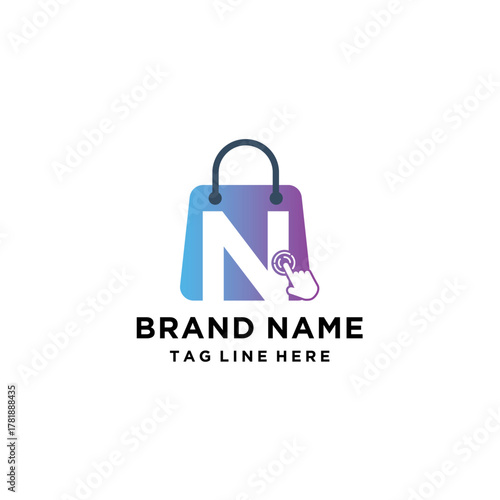 Design Logo letter N Touchscreen Shopping bag vector Template