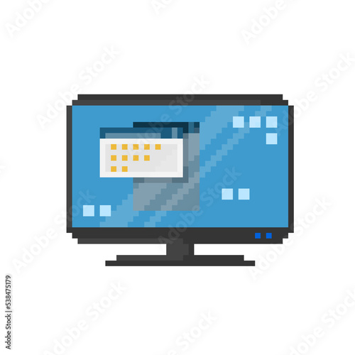 Desktop screen display computer pixelart icon illustration