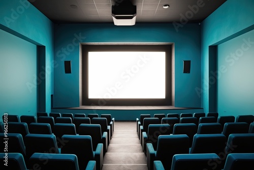 Desolate Cinema with Untouched White Screen in Cerulean Atmosphere