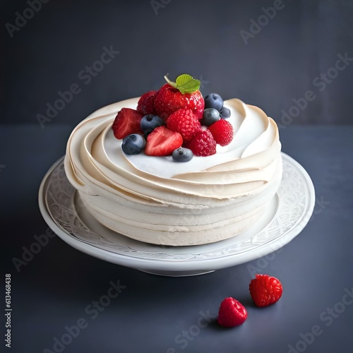 Dessert pavlova meringue with fruit on a neutral background created by AI