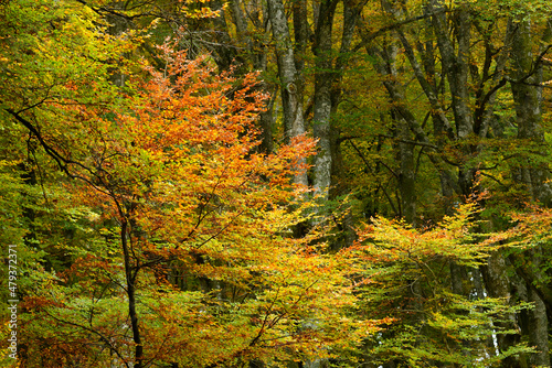 Detail of a beech tree forest in autumn foliage