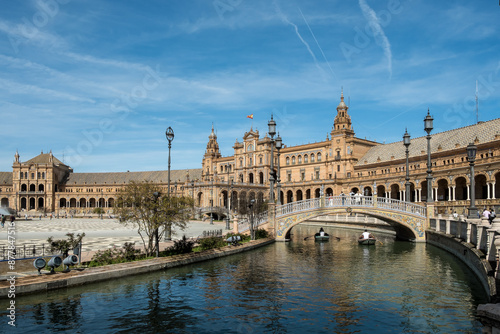 Detail of the Plaza de España, an architectural ensemble located in María Luisa Park in the city of Seville (Andalusia, Spain). It was declared a cultural heritage site in July 2023.