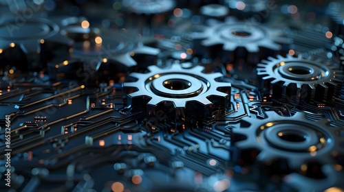 Detailed 3D Gears with Microchip Patterns Symbolizing Tech-Centric Business and Precision